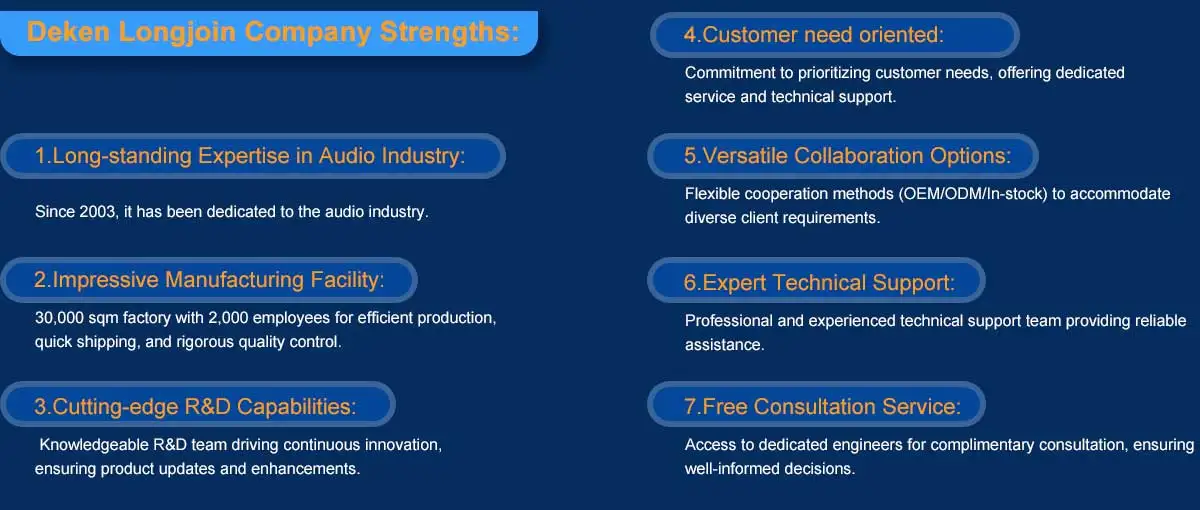 Established in 2003, DEKEN LONGJOIN is a subsidiary of LONGJOIN Group, a R&D and production-driven company specializing in high-end audio products. We specialize in the R&D, manufacturing, and sales of high-end audio products. We own our own brands: Thinuna and DEKEN.